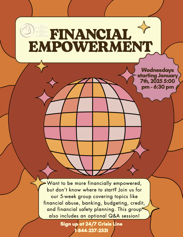 The Center for Women and Families will be hosting a virtual Financial Empowerment group via Teams on Wednesdays from 5-6:30pm starting Jan. 7th, 2026.